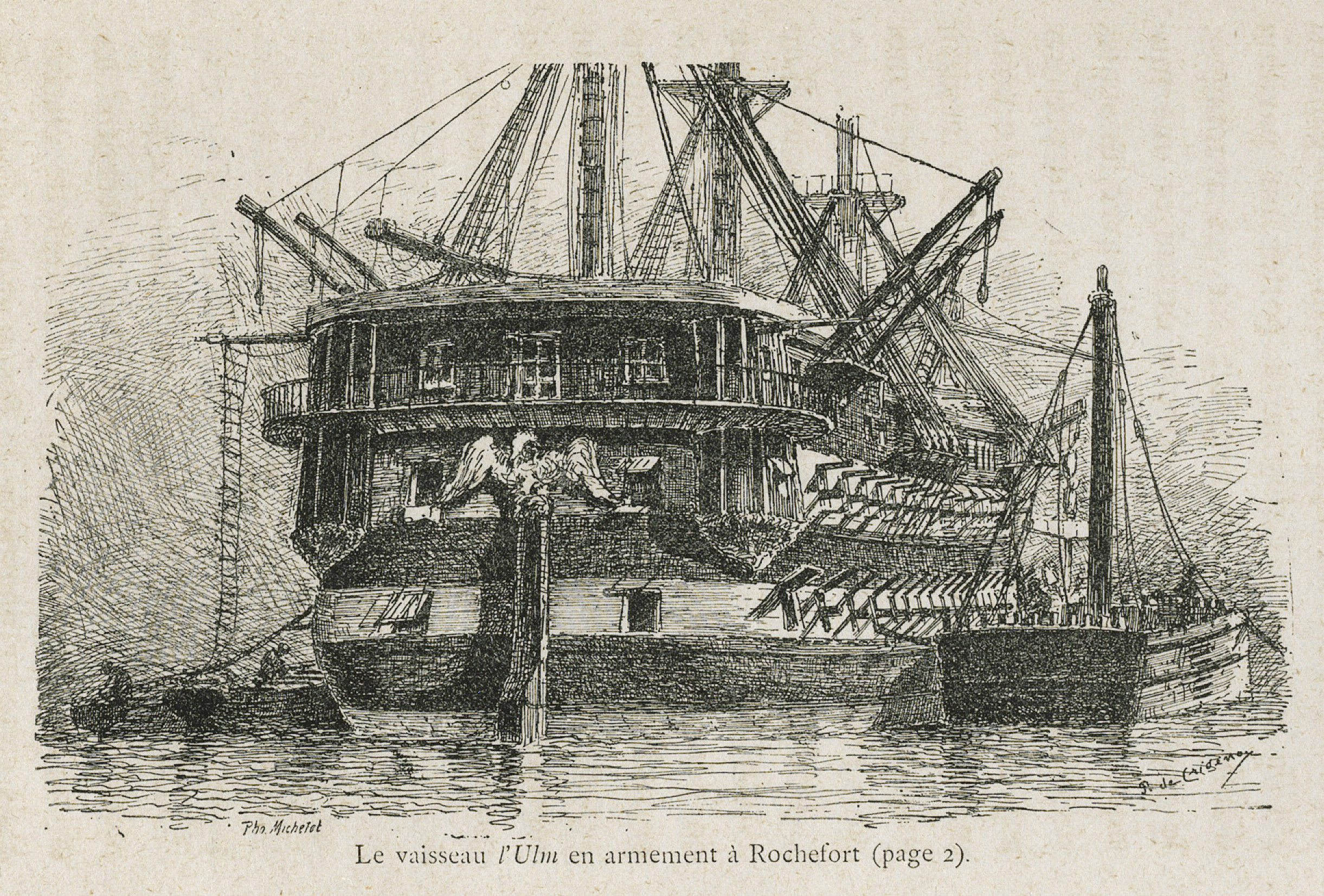 "Le vaisseau l'Ulm en armement à Rochefort",