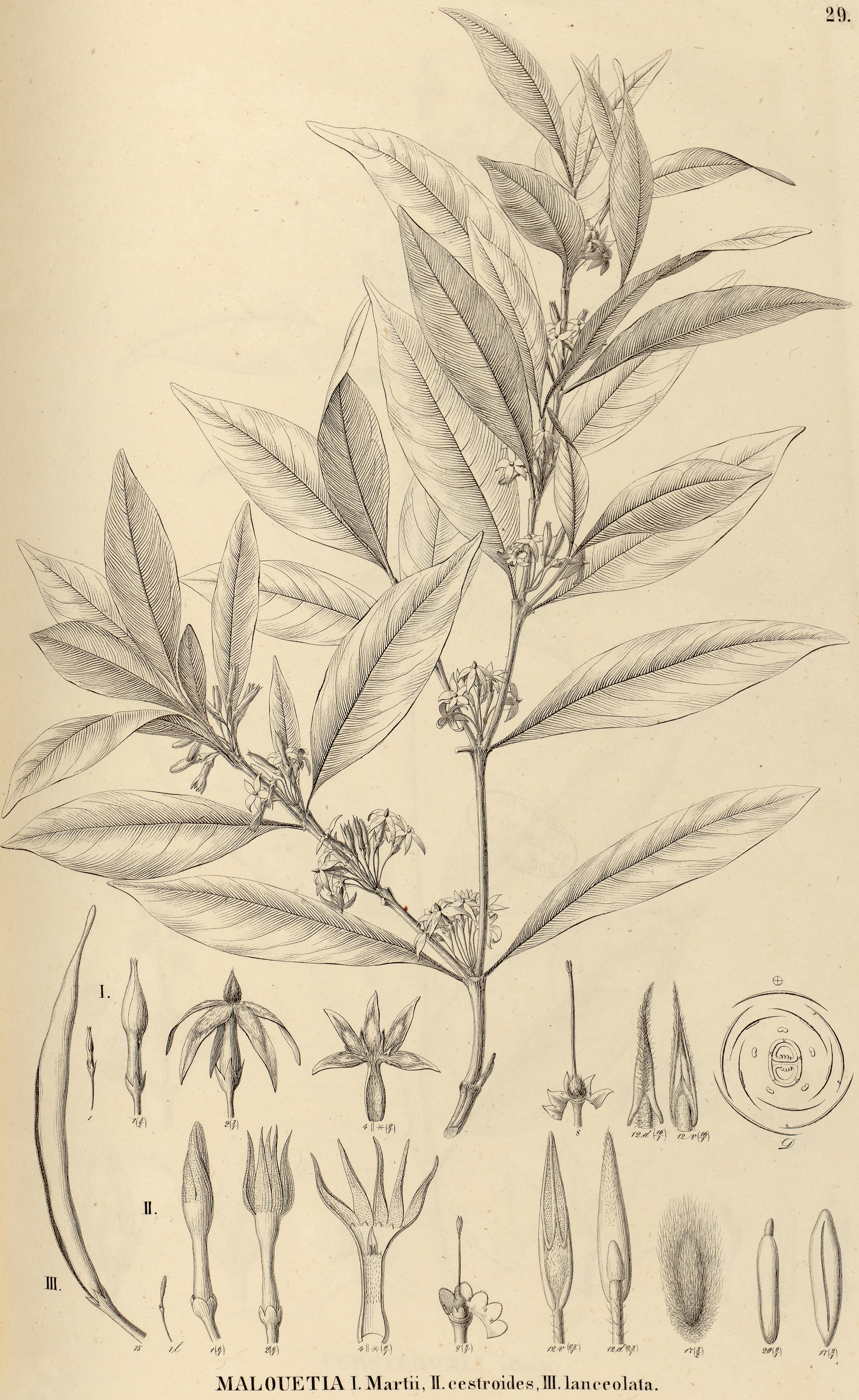 "29. MALOUETIA. I. Martii, II. cestroides, III. lanceolata.",
