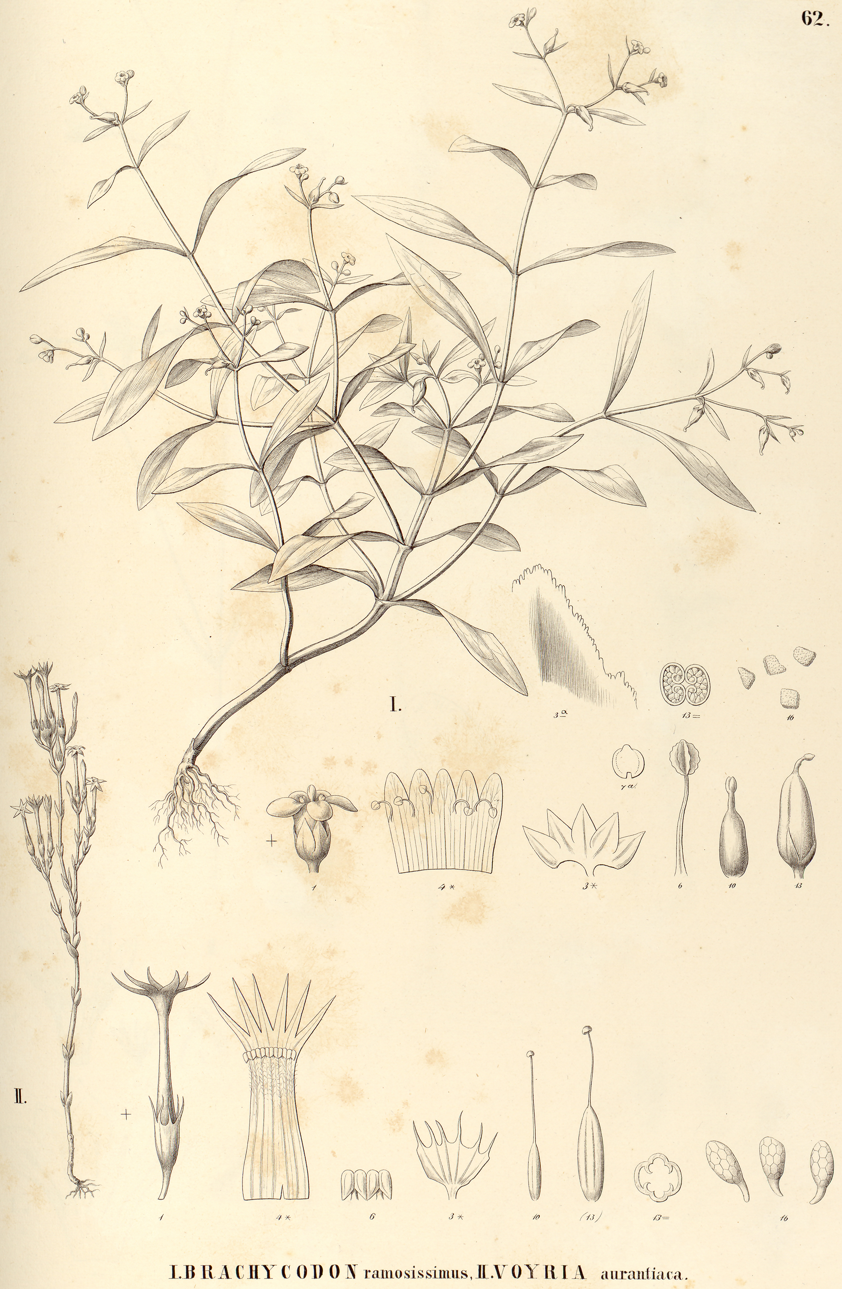 "62. I. BRACHYCODON ramosissimus, II. VOYRIA aurantiaca.",