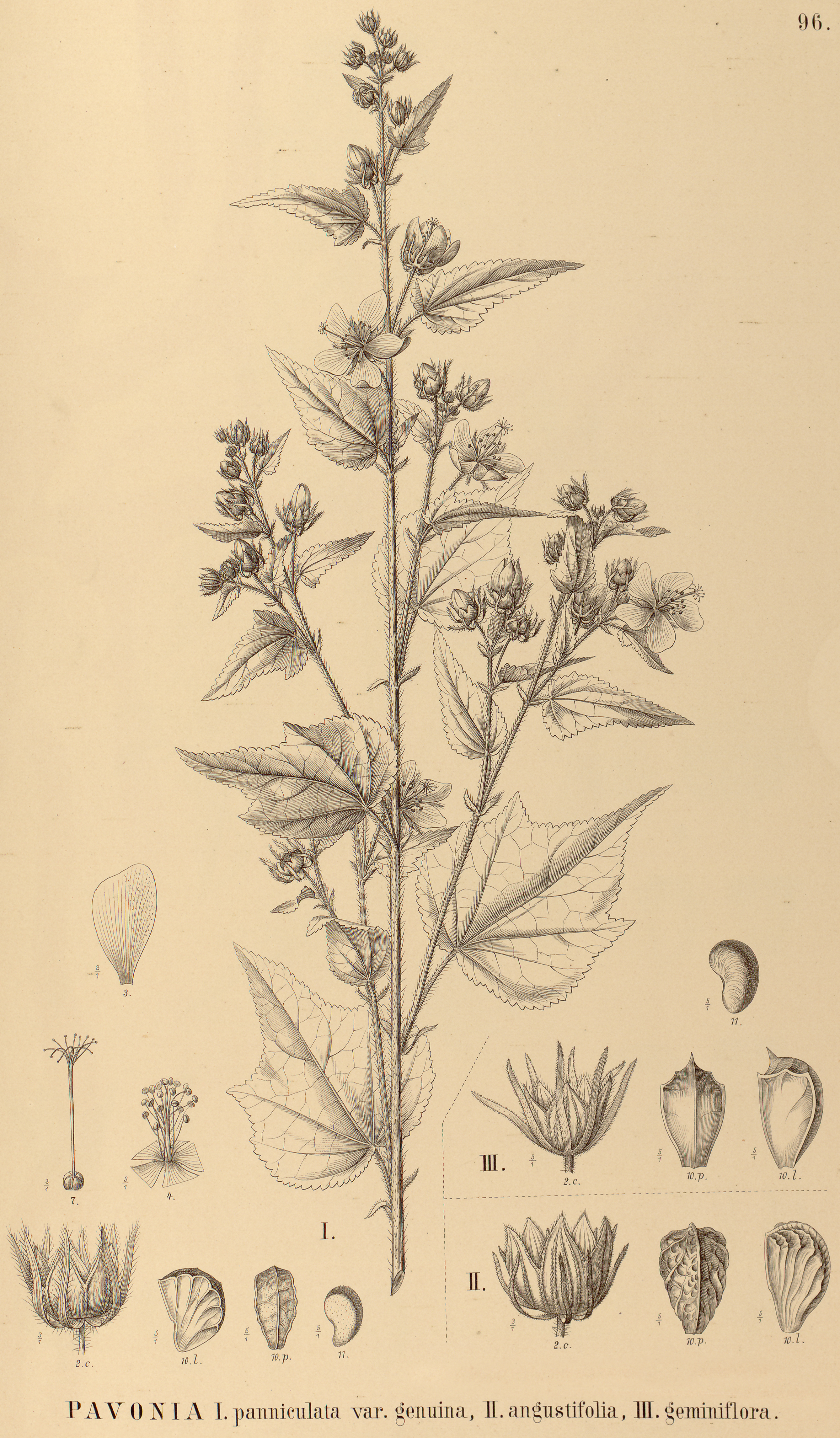 "96. PAVONIA I. panniculata var. genuina, II. angustifolia, III. geminiflora.",