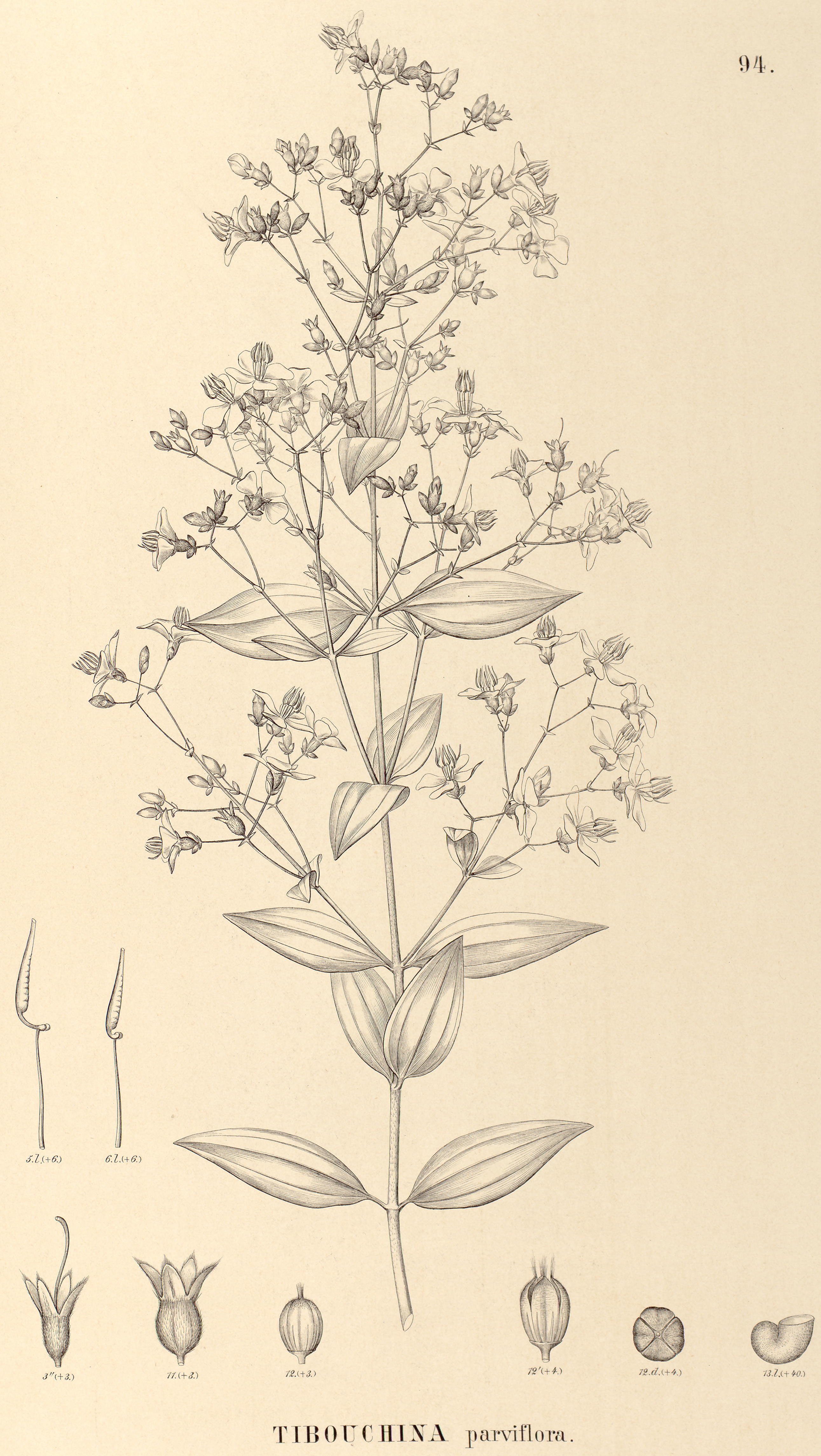 Flora brasiliensis : enumeratio plantarum in Brasilia hactenus detectarum quas suis aliorumque botanicorum studiis descriptas et methodo naturali digestas partim icone illustratas. Volumen XIV, Pars III, Melastomaceae : Tribus I, Microlicieae, Tribus II, Tibouchineae,