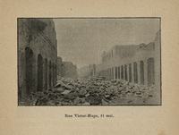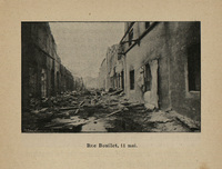 Gravure d'après photographie de la Rue Bouillet, à Saint-Pierre, Martinique, 11 mai 1902, après l'éruption de la Montagne Pelée