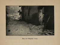 Gravure d'après photographie de la Rue de l'Hôpital, Saint-Pierre, Martinique, 9 mai 1902
