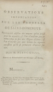 Observations importantes sur les troubles de Saint-Domingue. Inutilité absolue des moyens qu'on prend pour les apaiser, si l'on n'améliore pas en même temps le sort des Nègres esclaves, si l'on n'interdit pas aux Colons les rigueurs excessives qu'ils se permettent d'exercer sur eux