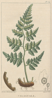 Un plant de Calaguala avec ses feuilles ainsi que sa racine.