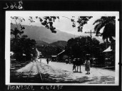 Haïti : portail Levgane à Port au Prince : cette photo est faite à la limite de la ville, à l'endroit appelé communément Portail Levgane ; c'est le commencement de la campagne. Déjà elle donne une idée de la merveilleuse flore haïtienne et de toute la beauté pittoresque de nos campagnes. On voit les rails du chemin de fer P.C.S. : [photographie de presse] / Agence Mondial