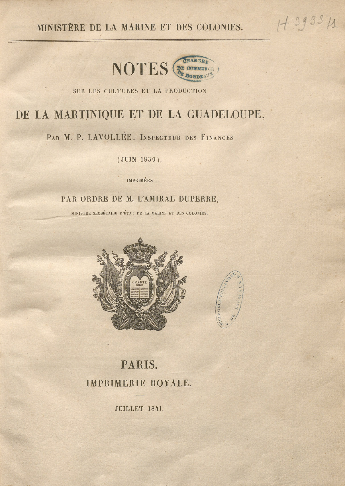 Notes sur les cultures et la production de la Martinique et de la Guadeloupe