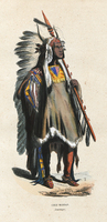 Homme avec une coiffe à plume épaulant une lance