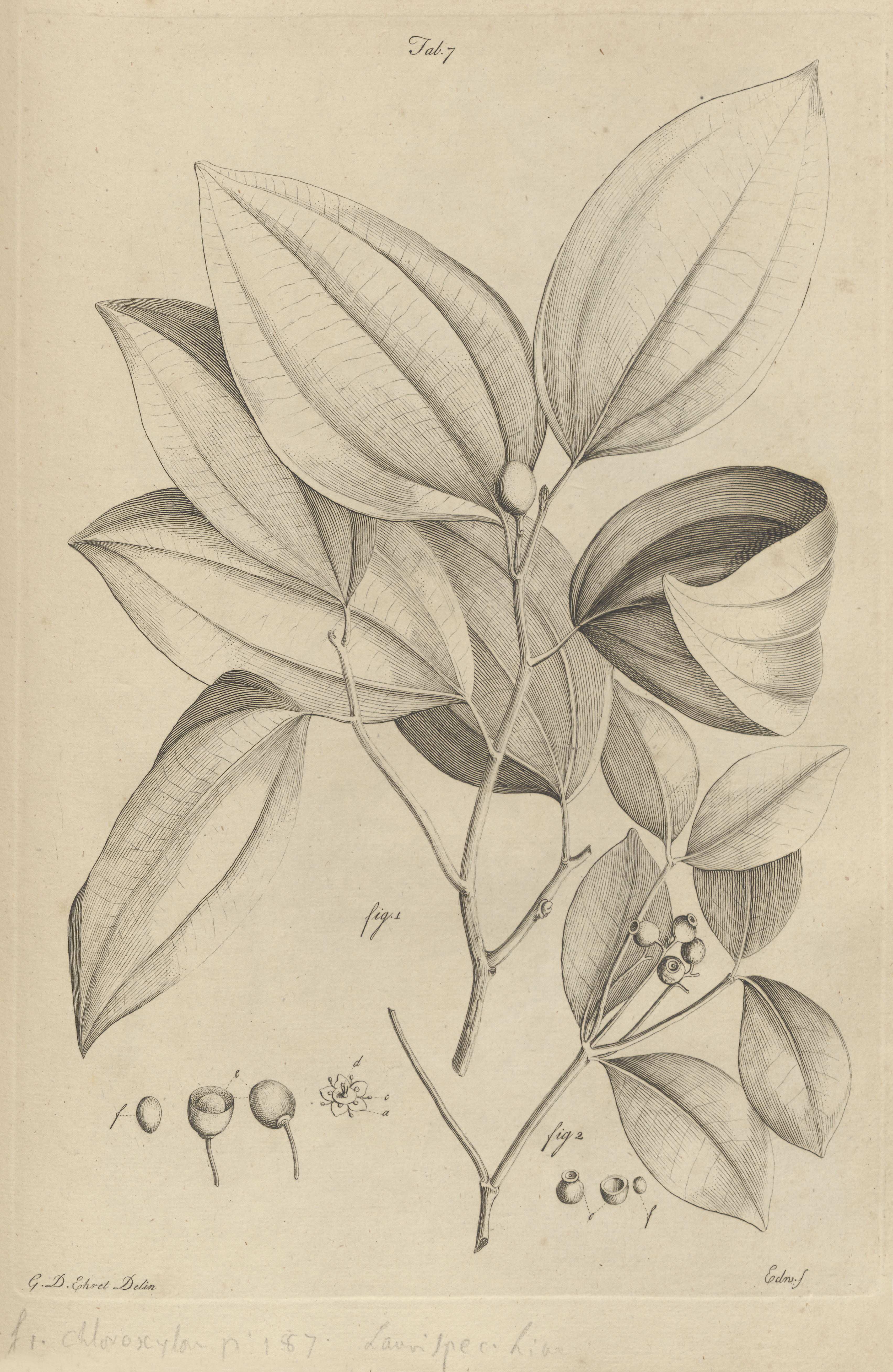 "Fig. 1 : Ziziphus chloroxylon, Laurus chloroxylon, famille des Rhamnaceae = jujubier à bois vert Fig. 2 : Calyptranthes zuzygium, Myrtus Suzygium, famille des Myrtaceae = myrtle-of-the-river"