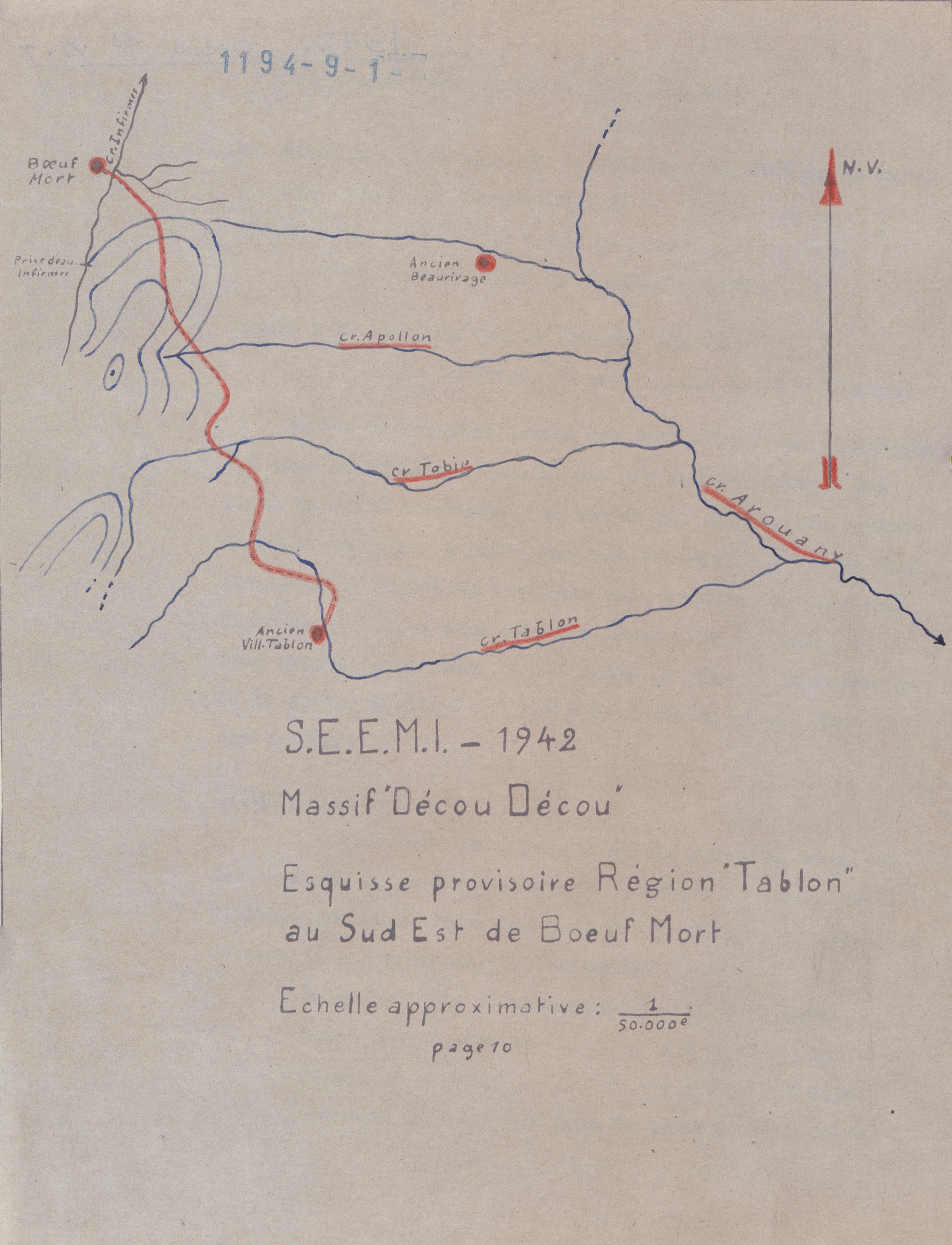 Croquis n°2 : massif « Décou Décou », esquisse provisoire région « Tablon » au sud-est de Bœuf Mort