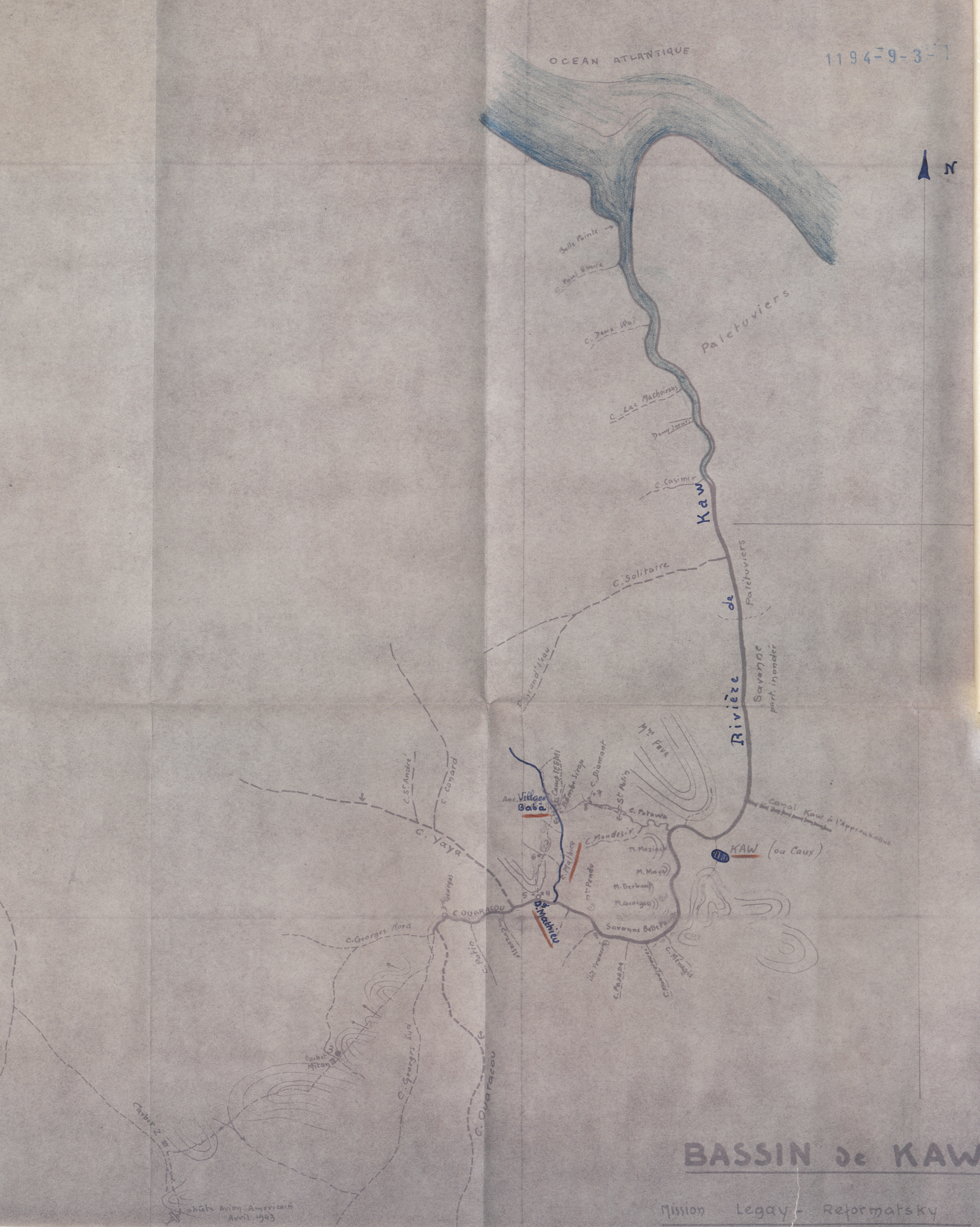 Carte d'une mission de Legay et Reformatsky insérée entre la . 10 et la p. 11 du « résumé des travaux effectués » de 1944.