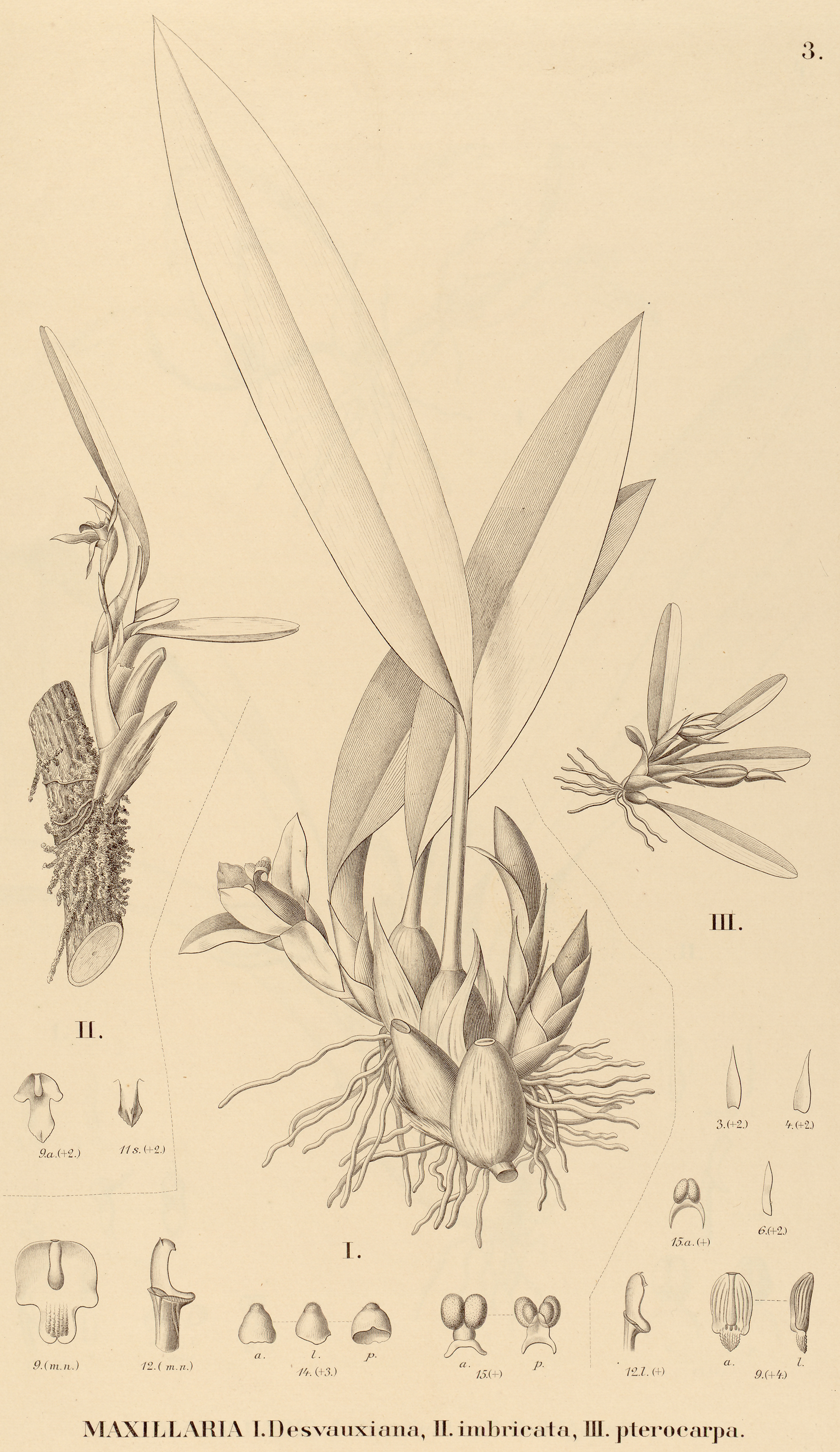 "3. MAXILLARIA I.Desvauxiana, II.imbricata, III. pterocarpa",
