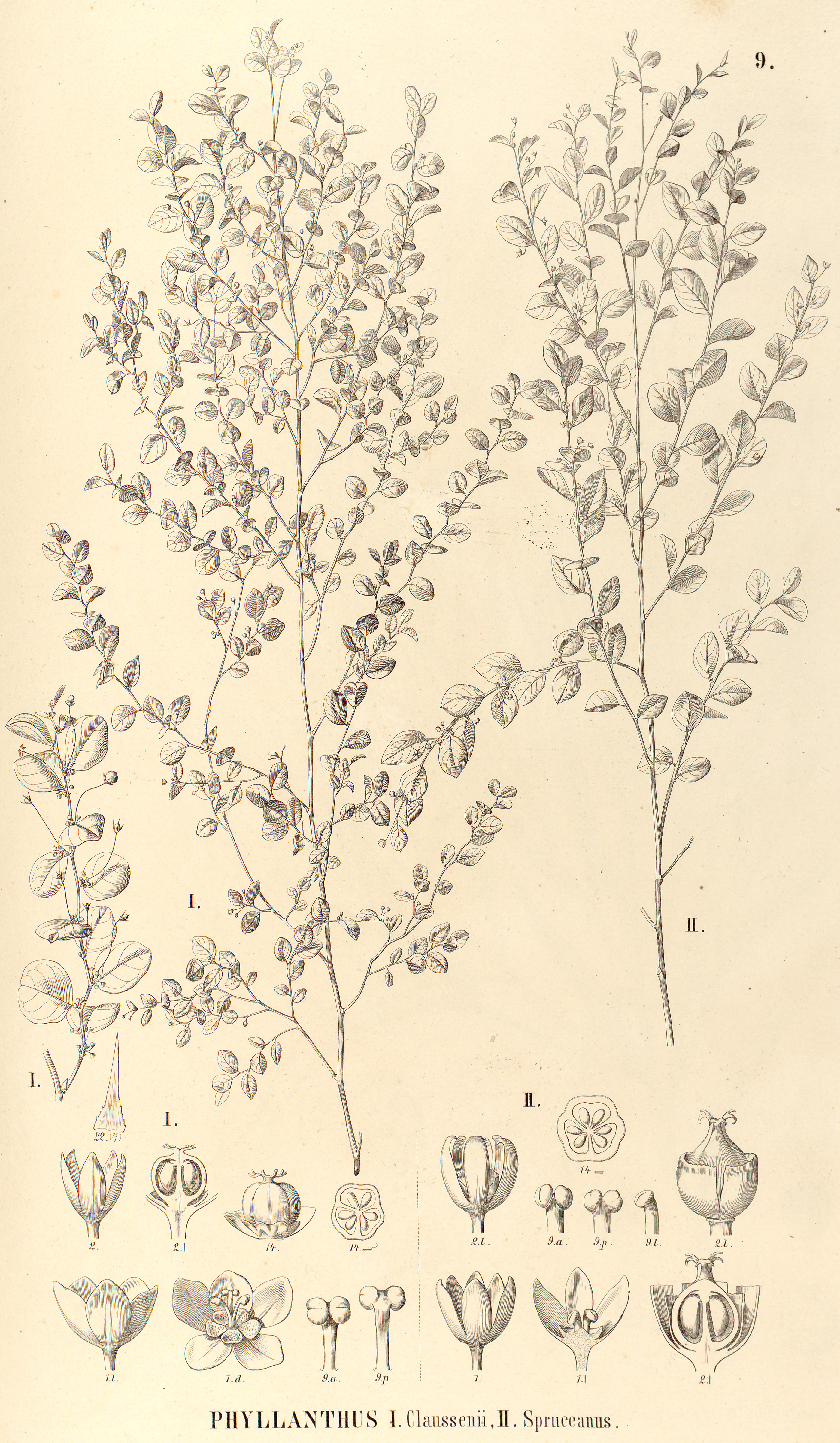 "9. PHYLLANTHUS I. Claussenii, II. Spruceanus.",