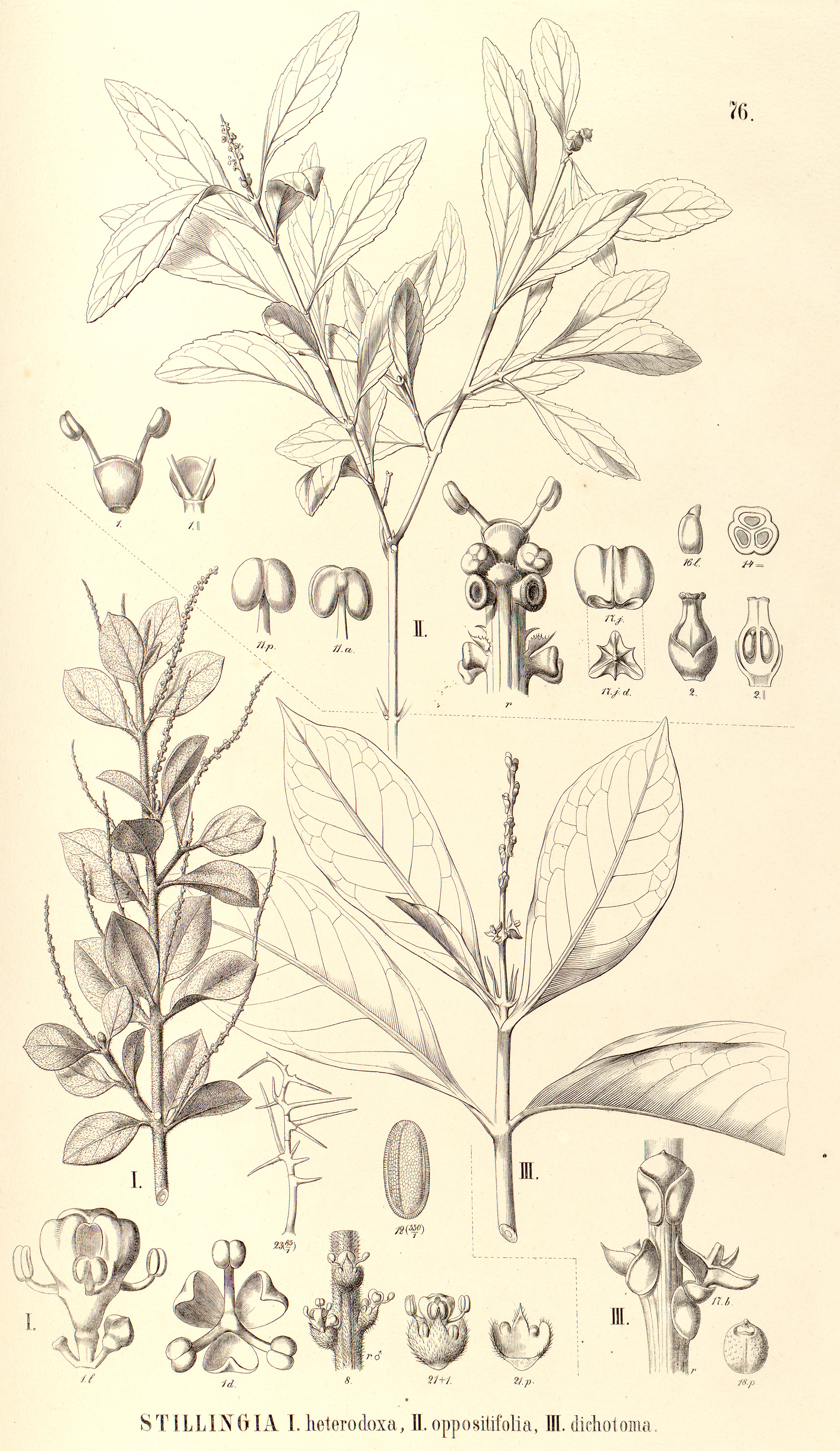 "76. STILLINGIA I. heterodoxa, II. oppositifolia, III. dichotoma.",