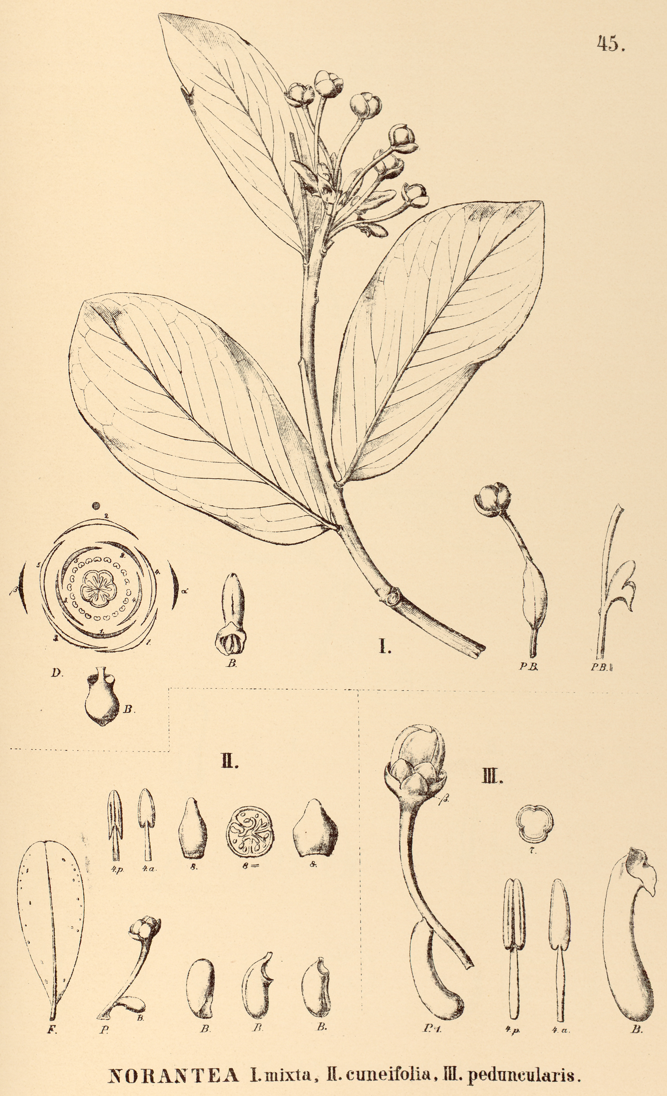 "45. NORANTEA I. mixta, Il. cuneifolia, III. peduncularis.",