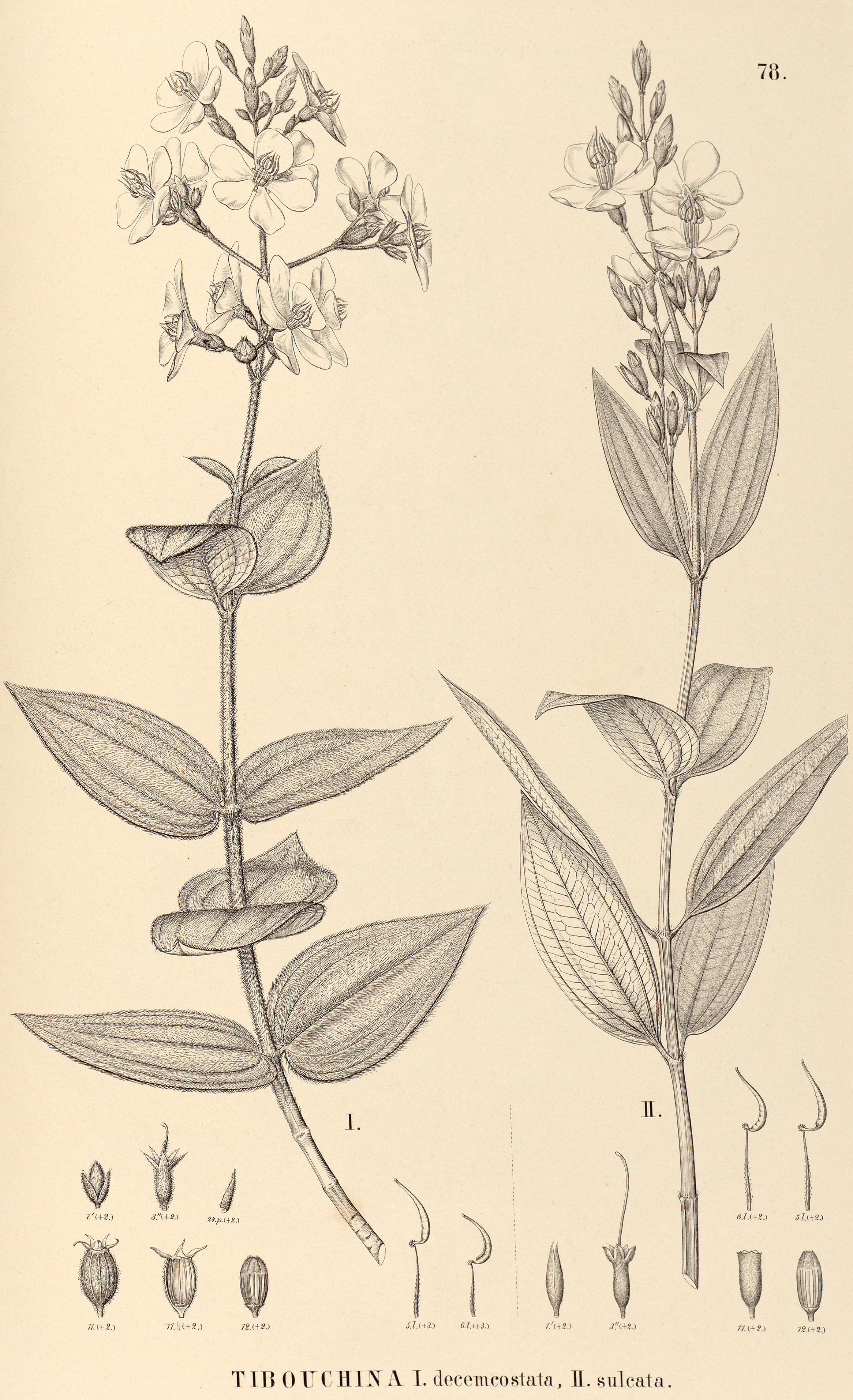 "78. Tibouchina I. decemcostata, II. sulcata.",