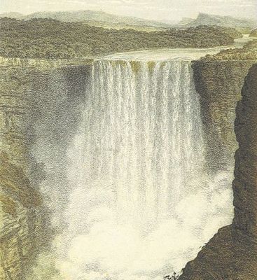 C’est dans l'ouvrage de Ch. B. Brown, Canoe and Camp Life in British Guiana (1876) que l’on trouve la première description éditée et illustrée des Chutes de Kaieteur ou Kaieteur Falls.