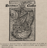 Le vaisseau de Christophe Colomb. D'après un bois gravé de la Lettre de Christophe Colomb, écrite de son bord le 15 février 1493 et imprimée à Bâle le 21 avril 1494
