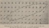 Itinéraires de la 2e Expédition ( retour ) et de la 4e ( aller ), tracés sur une carte des vents de Brault pour avril, mai et juin