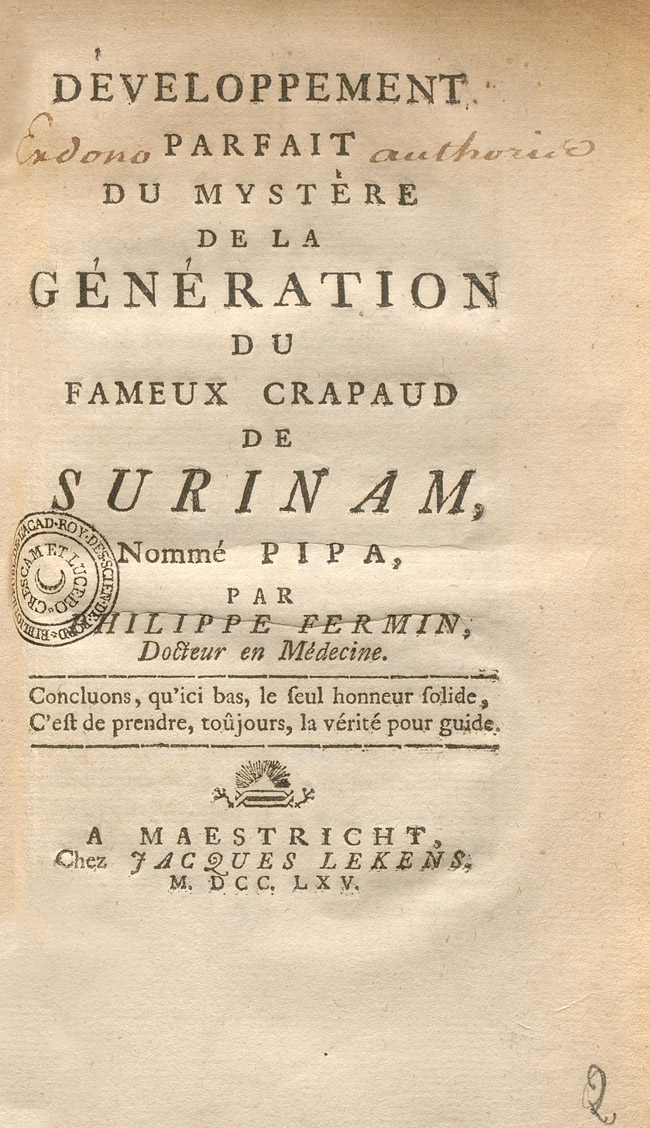 Développement parfait du mystère de la génération du fameux crapaud de Surinam, nommé pipa