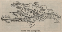 Carte de la mer des Sargasses avec les lignes de déclinaisons magnétiques actuelles, la ligne 0° passe maintenant entre Cuba et Saint-Domingue, alors qu'en 1492 elle passait à l'Ouest de l'île Florès et atteignait l'Amérique du Sud entre le Cap Codéra et l'île Marguerite