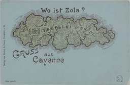 Titre : Wo ist Zola ? : [carte postale] : Gruss aus CayenneAuteur : Herbst & FrankEdition : Herbst & FrankDate : 1895Type : Image - image, image fixe, still imageDescription : Carte devinette représentant un portrait de Zola caché dans un dessin de l'Ile du Diable, en double exemplaireRessources liées : vignette : https://bibliotheques-specialisees.paris.fr/in/rest/Thumb/image?id=p::usmarcdef_0001112956&mat=PostcardLangue : gerConditions d'utilisation : domaine public, public domainNotice du document original : Ville de Paris / BHVP, CPA-1059-(001-002)