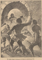 Des flibustiers et des Indiens Caraibes en bord de mer.