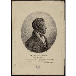Titre : Alexandre Pétion, président d'Haïti, né au port au Prince, en avril 1770, et ravi à sa patrie le 29 mars 1818Auteur : Barincou. LithographeEdition : Lith. Vilain (Paris)Type : Image - engraving, estampe, still imageDescription : Lithographie réalisée au 19e siècle. Portrait en buste, de profil, tourné vers la droite, en médaillon. Mention :"Dédié à son S. Ex. Ju. Pre. Boyer, Président d'haïti, par son dévoué serviteur Barincou"Ressources liées : vignette : https://selene.bordeaux.fr/in/rest/Thumb/image?id=BordeauxS_B330636101_DP084_037, Fonds DelpitLangue : freConditions d'utilisation : domaine public
