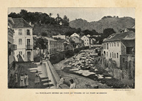 Gravure d'après photographie de la rivière La Roxelane, Martinique, le 26 mai 1902
