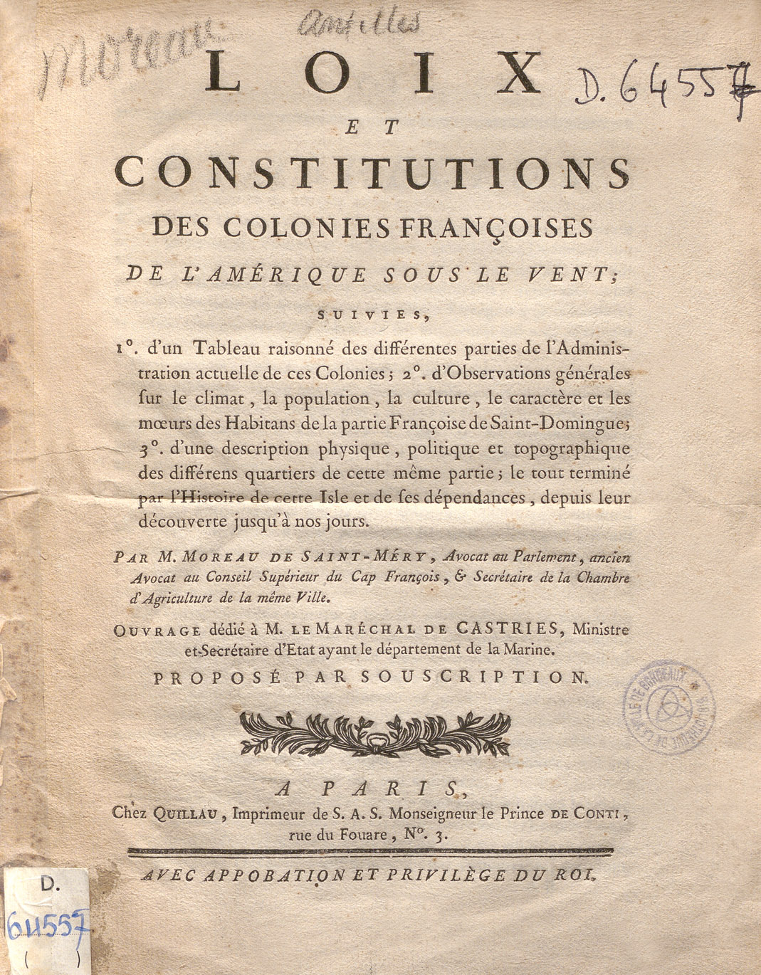Loix et constitutions des colonies françoises de l'Amérique sous le vent