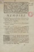 Titre : Mémoire pour le sieur Jacques Rasteau, négociant à la Rochelle, & le sieur Benjamin la Laisse, Capitaine de Navire, Appellans. Contre Jean-Baptiste Butteau & autres, Intimés.Edition : Imprimerie de KnapenLieu : ParisDate : 1763Type : Livre - Pièce judiciaireLangue : FrançaisConditions d'utilisation : Domaine public