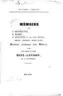 Titre : Mémoire pour 1° Henriette, 2° Marie, 3° Suzanne et ses trois enfants : Amélie, Honorine, Marie-Claire, esclaves réclamant leur liberté, contre les sieur et dame Rufz-Lavison, de la Martinique / [signé : Ad. Gatine,...] ; Cour de cassation. Chambre civileEdition : Impr. de Ph. Cordier (Paris)Date : 1845Type : Livre - monographie imprimée, printed monograph, textDescription : Appartient à l’ensemble documentaire : Martiniqu1, Avec mode texteRessources liées : Notice du catalogue : http://catalogue.bnf.fr/ark:/12148/cb304859519Langue : freConditions d'utilisation : domaine public, public domainNotice du document original : Bibliothèque nationale de France, département Philosophie, histoire, sciences de l'homme, 8-LK12-1018