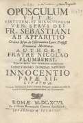 Opusculum vitae, virtutum et miraculorum ven. servi Dei Fr. Sebastiani ab apparitio ordinis min. de observantia laici professi provinciae Mexicanae. Authore fratre nicolao plumbensi, diacovensi, sev bosnensi episcopo sanctissimo domino nostro Innocentio papae XII litatum. Cura, ac solicitudine R.P.F. Iaonnis Fernandez Zejudo, actualis in curia causae canonizationis serui Dei procuratoris