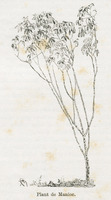 Une branche de Médecinier manioc avec ses feuilles et ses fleurs ainsi que sa racine.