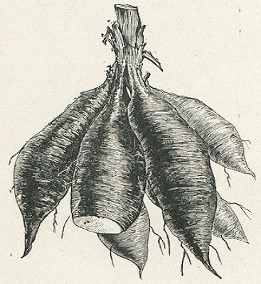 Racines d'un tubercule (source : Manioc). Domaine public