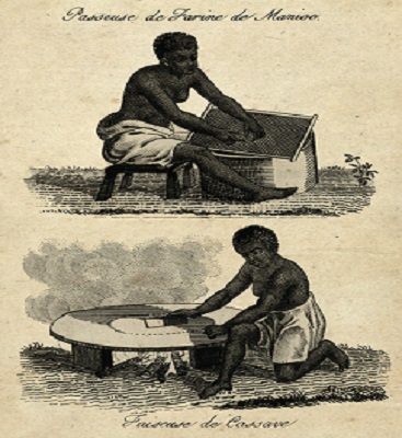 Passeuse de farine de manioc (source : Manioc). Domaine publicLa cassave !
